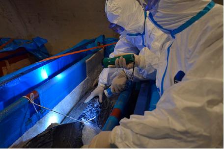 Considering time urgency of the clearance, Xiaoshan Airport Customs House (subordinate to Hangzhou Customs District) assigned a special workgroup to make the control plan, delimit and disinfect the inspection area, instruct relevant businesses in their declaration, deal with their advance declaration so as to release the dolphins within the minimal time. On the arrival of the airplane, the Customs officers quarantined the plane, the inspection area and a transporting lorry to detect the risk of epidemic transmission and then, after getting all normal results, allowed the dolphins to be carried away by the lorry. The whole process only took 55 minutues.