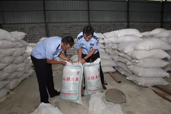 The smuggled-in rice was seized by the officers in a border warehouse and