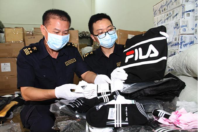 On September 15, Hengqin Customs inspected a batch of export goods including 519 pairs of socks and 883 pairs of trousers printed with the “adidas and pattern” mark, 6 handbags with the “FILA” mark, 2 handbags with the “GOYARD” mark, 4 handbags with the “Levi’s and pattern” mark, 9 handbags with the “LONGCHAMP and pattern” mark, 2 bags with the “patagonia and pattern” mark, and 7 bags with the “TORY BURCH” mark, all of which were finally identified IPR infringing.