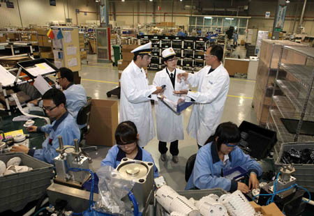 Customs officers visit a semiconductor manufacturer to get the first hand information on its import and export business. (2)