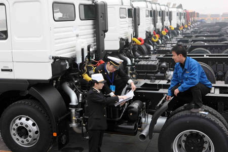 Customs officers exert control over the heavy-duty trucks (for export) at Shaanxi Automobile Group Co., Ltd. (3)