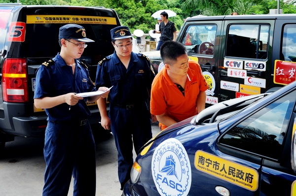 Customs officers exert control over cars entering China for China-ASEAN rally