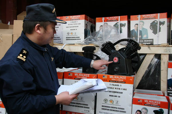 Officers of Nantong Customs House (affiliated to Nanjing Customs District) seized 4 infringing air compressors and 580 parts which were valued at USD 30,000 recently. Officers said when exercising control over the goods, they found out that the products carried the distinctive logo of “MILWAUKEE” but not “SHOU LI” as stated in the declaration form. “MILWAUKEE” is a trademark that had been put on record with the General Administration of Customs of China and its owner—Milwaukee Electric Tool Corporation confirmed that the seized ones were infringing items. The infringing goods were detained by the Customs administration according to law.