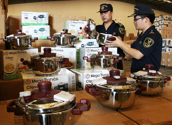 Officers of Ningbo Customs District seized a batch of pressure cookers infringing upon the trademark rights of “CLIPSO”, valued at RMB 570 thousand. This is the first consignment of infringing upon the trademark rights of “CLIPSO”.